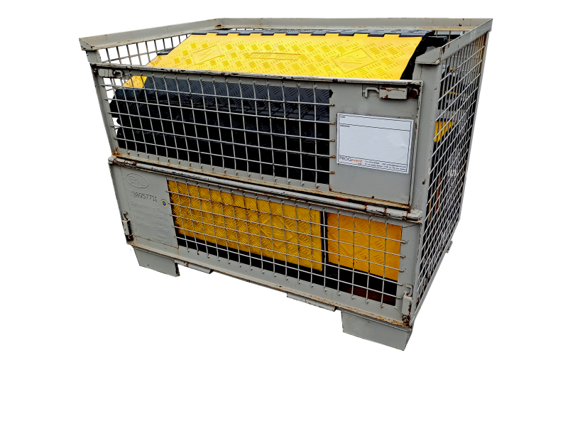 Les passages de câbles sont conditionnés par 20 dans des panières empilables et ouvrables pour faciliter le dispatch et la manutention.