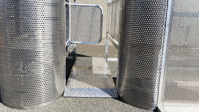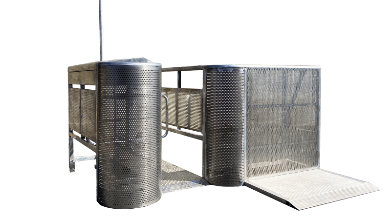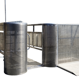 Chaque porte est constituée d’un socle qui sert de passe câbles et de passage pour le public, d’un bloc moteur avec tourniquet et d’un bras haut avec indicateur d’ouverture/fermeture.