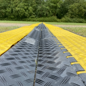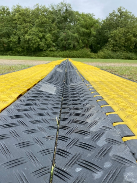 Les passages de câbles 5 canaux en polyuréthane sont particulièrement adaptés aux câbles sons, lumière et vidéos ainsi qu’à la distribution électrique. Les couvercles anti-dérapants sont fixés par un système de charnière autonettoyante qui en garanti la solidité, le maintien et la facilité d’utilisation. Ils sont résistants aux huiles, aux acides et aux carburants. Ils résistent aussi bien au passage d’une foule qu’à celui d’un semi-remorque.